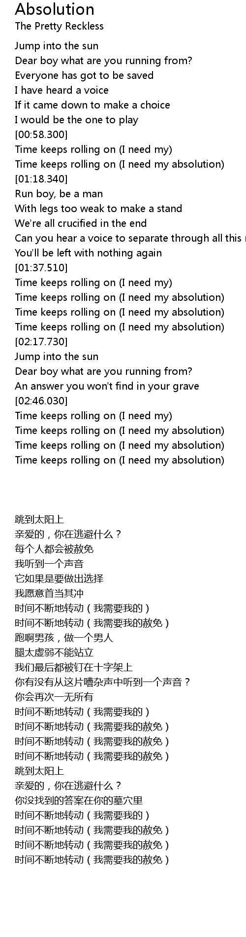 [02:55.800] Time keeps rolling on (I need my absolution)
