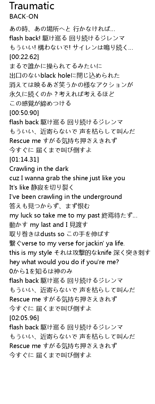 | [02:30.98] | flash back 駆け巡る 回り続けるジレンマ |