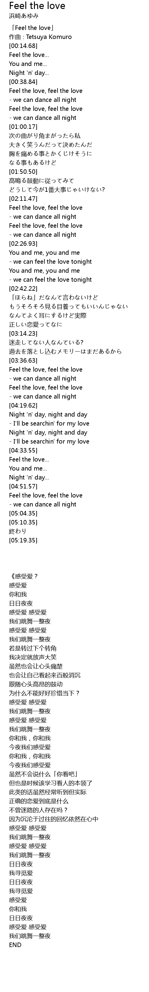 | [00:45.79] | Feel the love, feel the love |