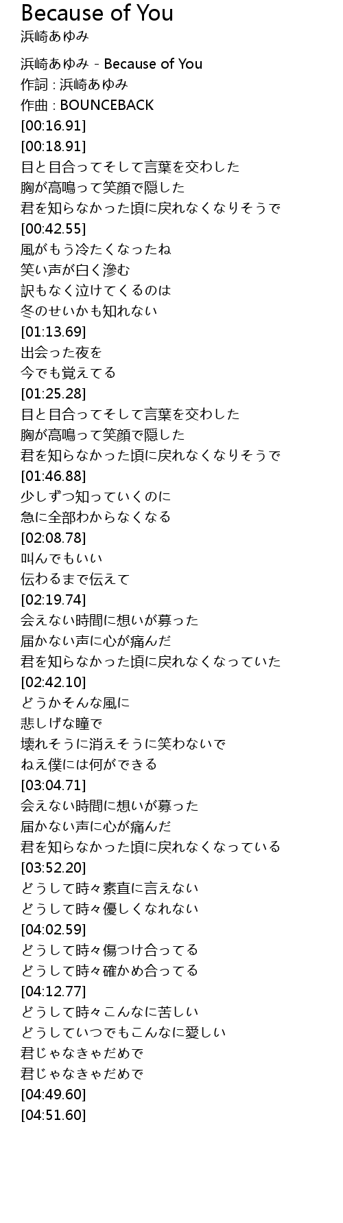 | [00:01.91] | 浜崎あゆみ - Because of You |