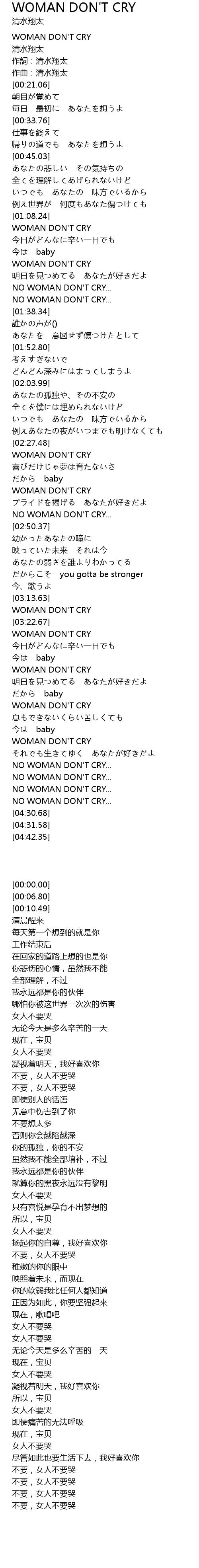 | [04:21.05] | NO WOMAN DON' T CRY |