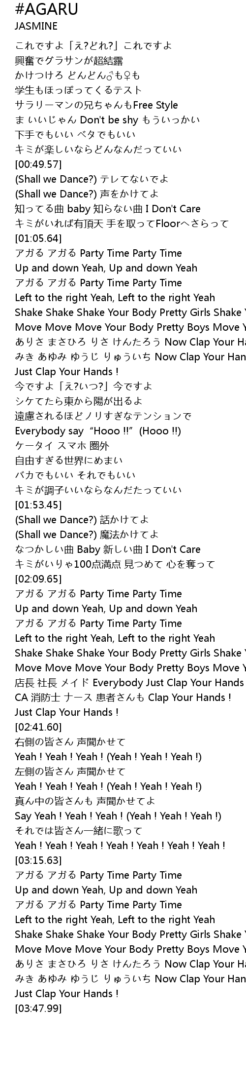 | [03:16.20] | アガる アガる Party Time Party Time |