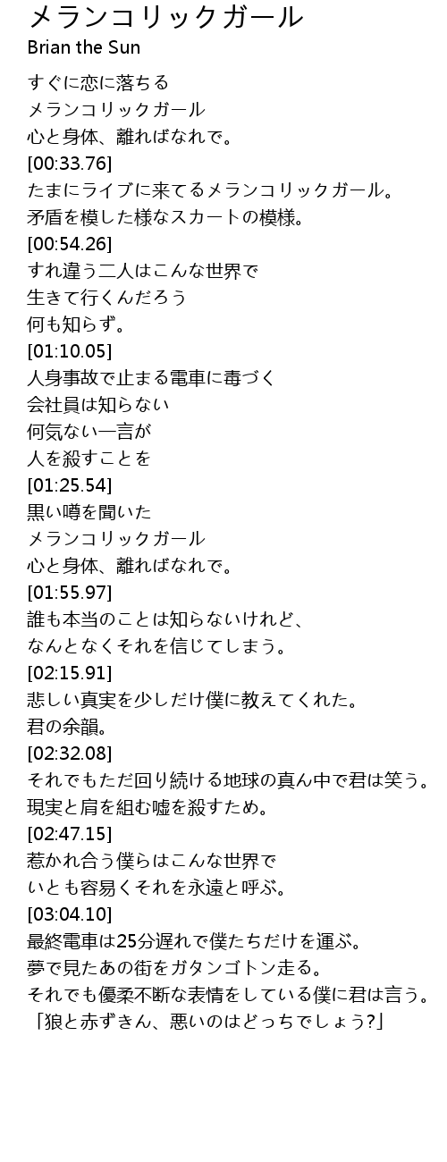 | [00:36.23] | たまにライブに来てるメランコリックガール。 |