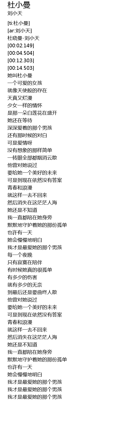 | [00:00.798] | dù xiǎo màn liú xiǎo tiān |