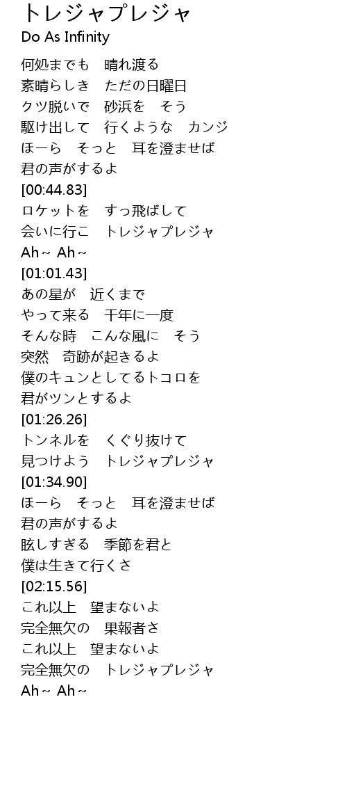| [02:28.45] | 完全無欠の トレジャプレジャ |