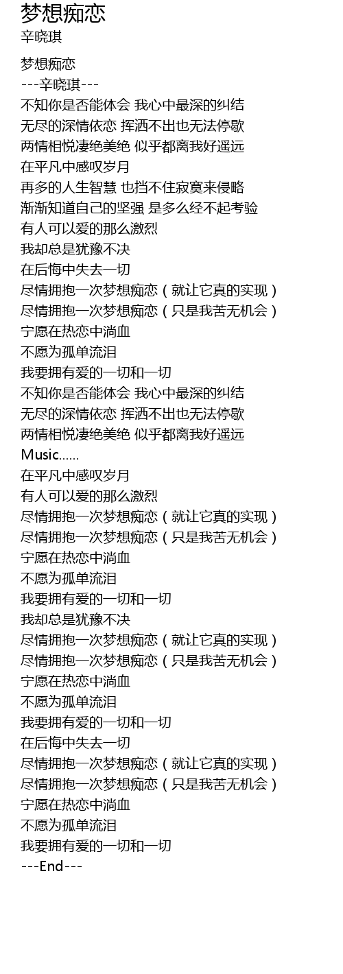| [01:29.31] | 尽情拥抱一次梦想痴恋(只是我苦无机会) |