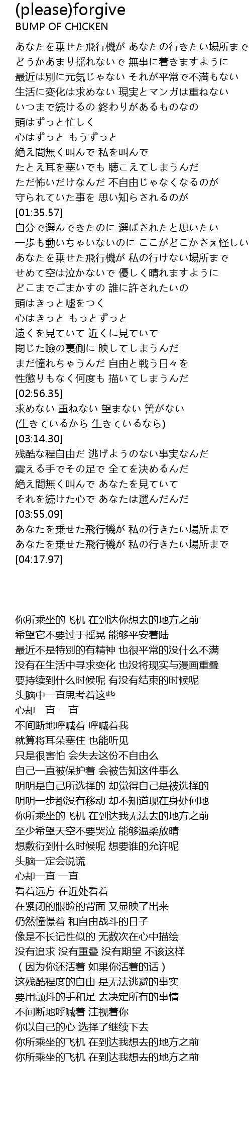 | [04:10.72] | chéng fēi xíng jī sī xíng chǎng suǒ |
