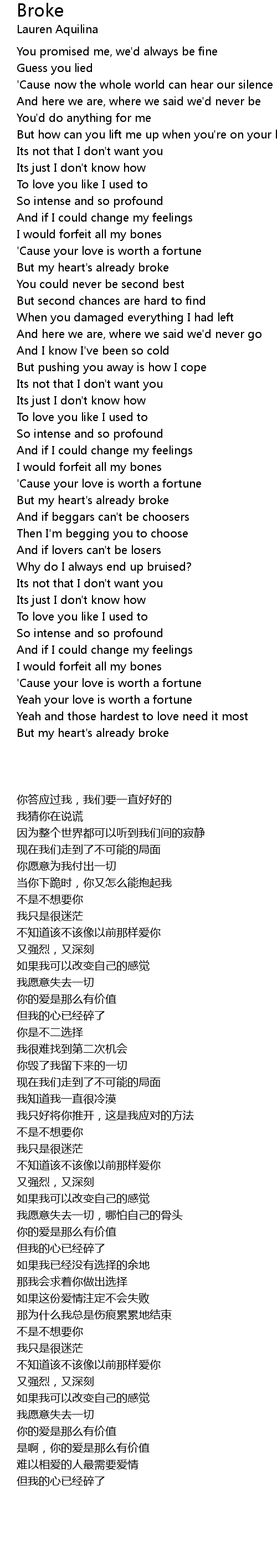 But my heart's already broke |