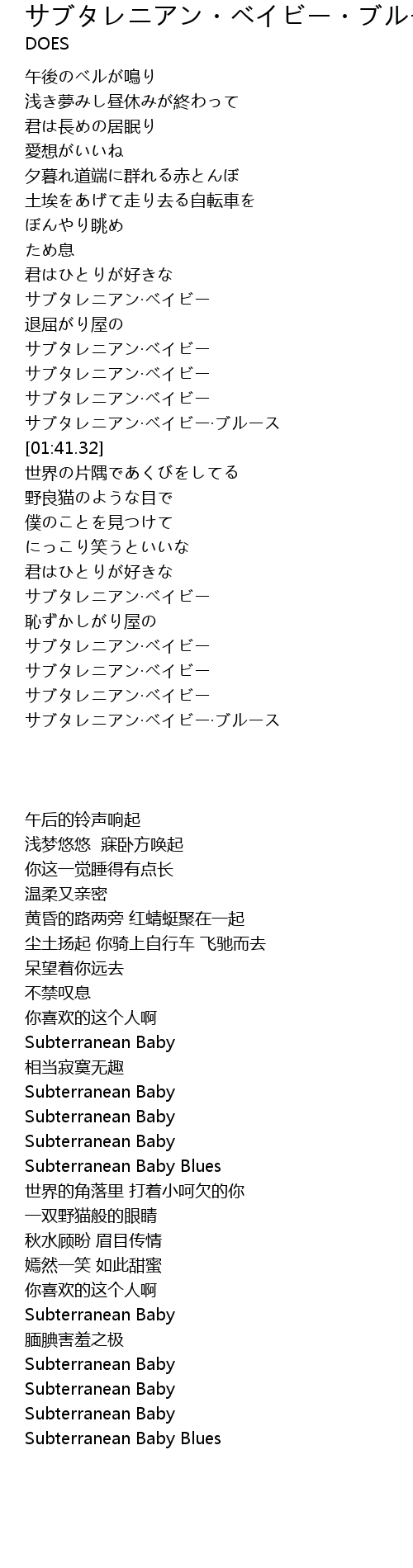 | [01:34.98] | サブタレニアン·ベイビー |