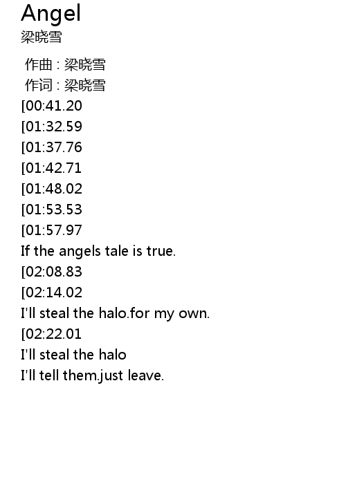 | [00:32.15][01:42.71] | I believe in angels.they will come and visit me. |