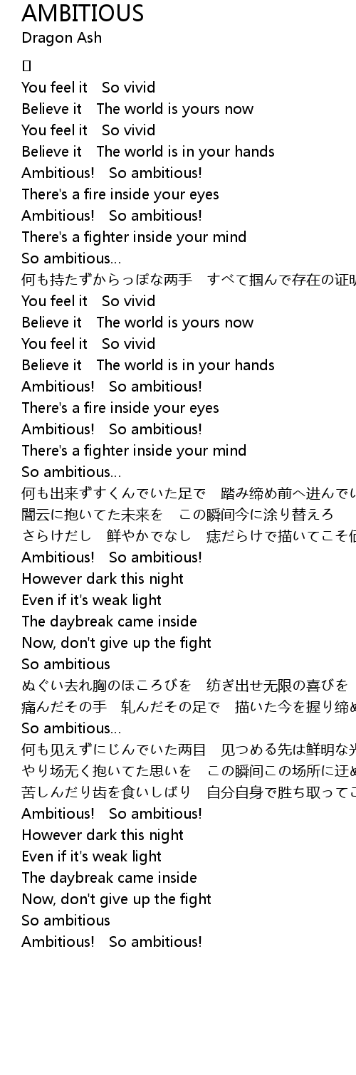 | 何も持たずからっぽな两手 すべて掴んで存在の证明 | |