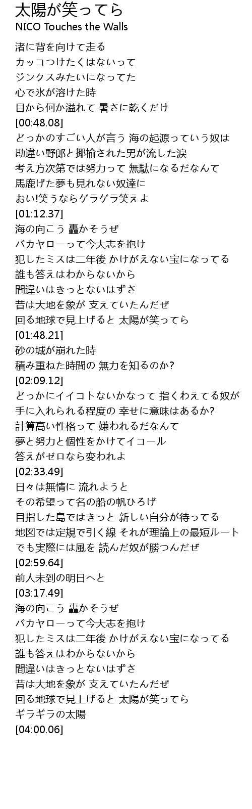 | [03:43.55] | 回る地球で見上げると 太陽が笑ってら |