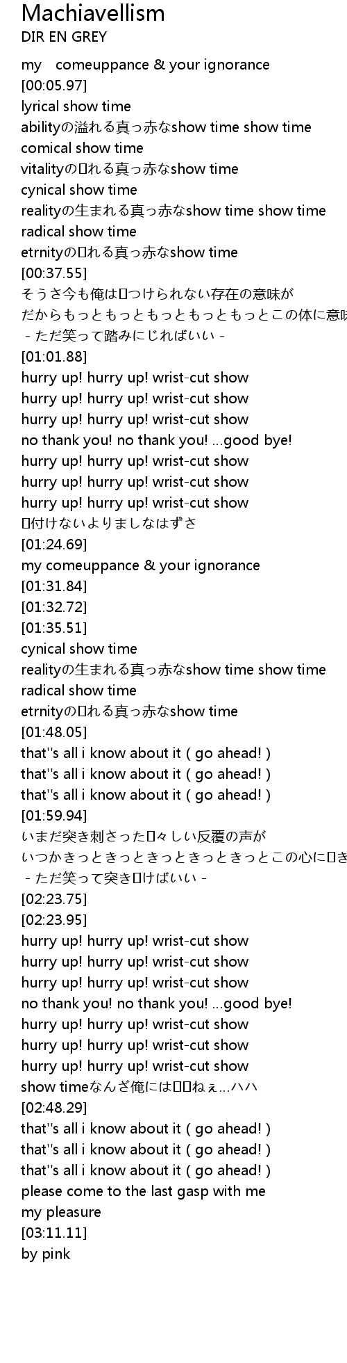 | [02:29.73] | hurry up! hurry up! wrist-cut show |
