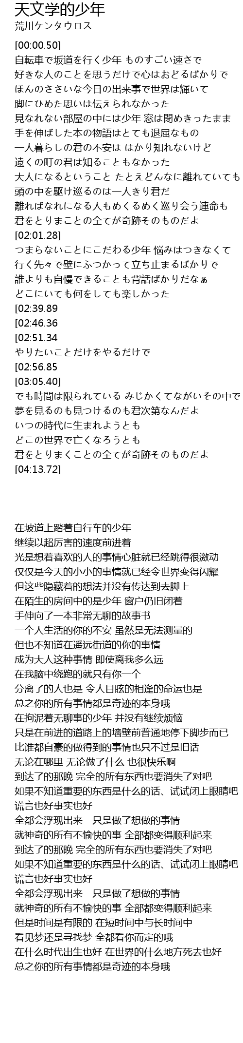 | [00:52.54] | zì zhuǎn chē bǎn dào xíng shào nián sù |
