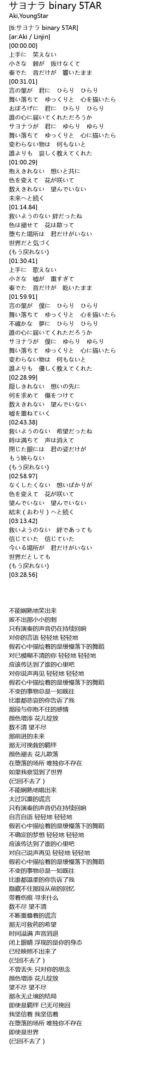 [ti:サヨナラ binary 5TAR] |