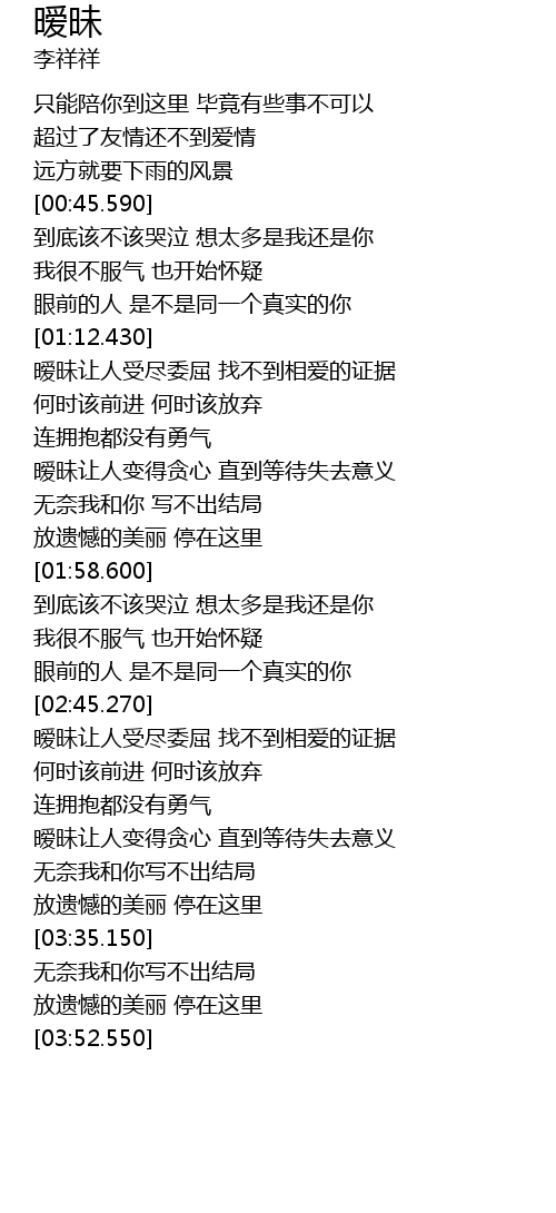 | [01:34.740] | 暧昧让人变得贪心 直到等待失去意义 |