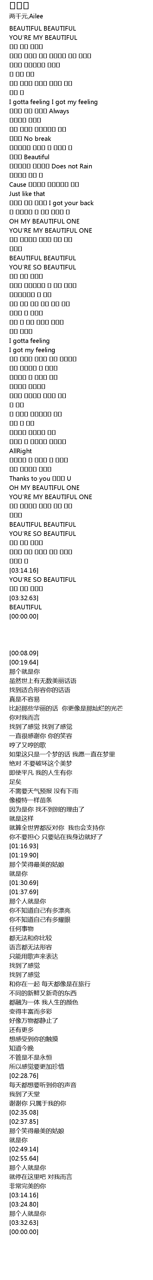 | [00:19.64] | YOU'RE MY BEAUTIFUL |