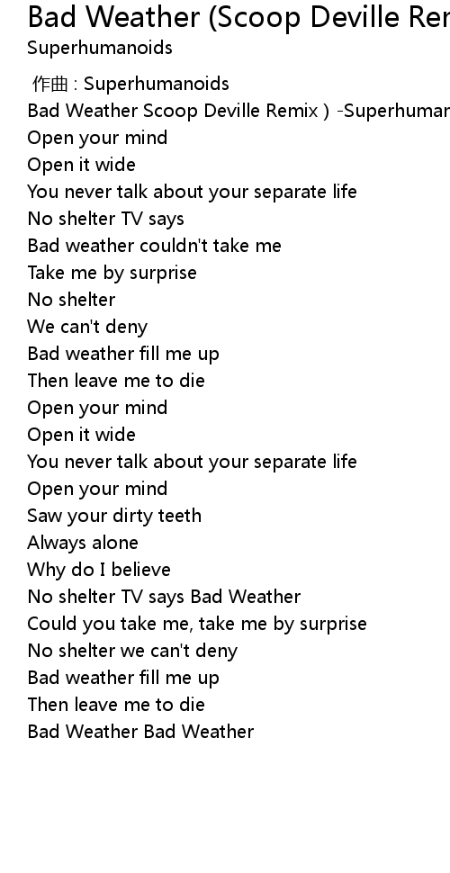 | [00:00.580] | Bad Weather Scoop Deville Remix Superhumanoids |