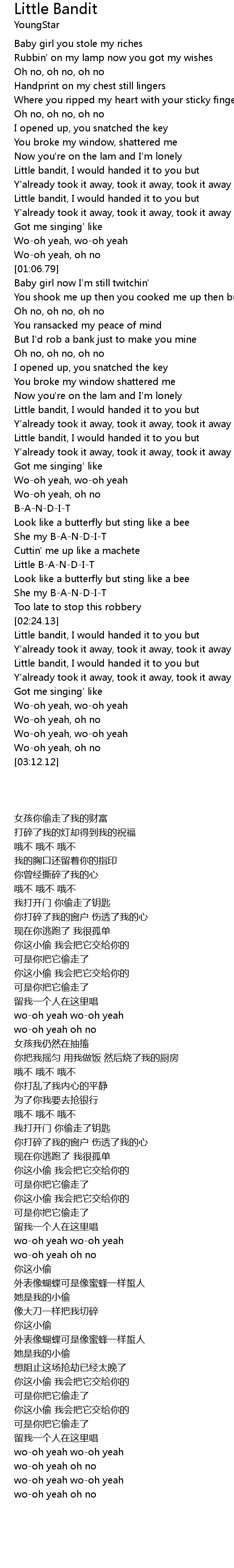 | [02:18.97] | She my B-A-N-D-I-T |