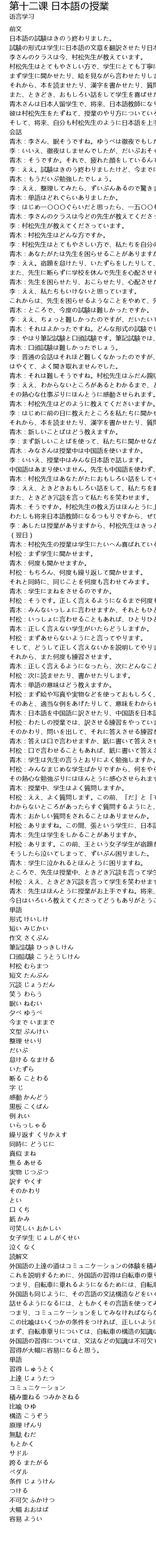 | [04:32.29] | 李:はじめに前の日に教えたところを私たちに聞かせたり、絵を見ながら言わせたりします。 |