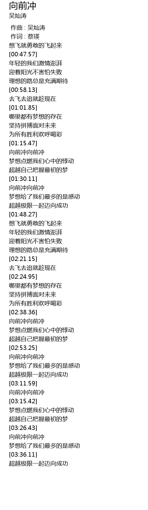 | [02:39.08] | xiang qian chong xiang qian chong |