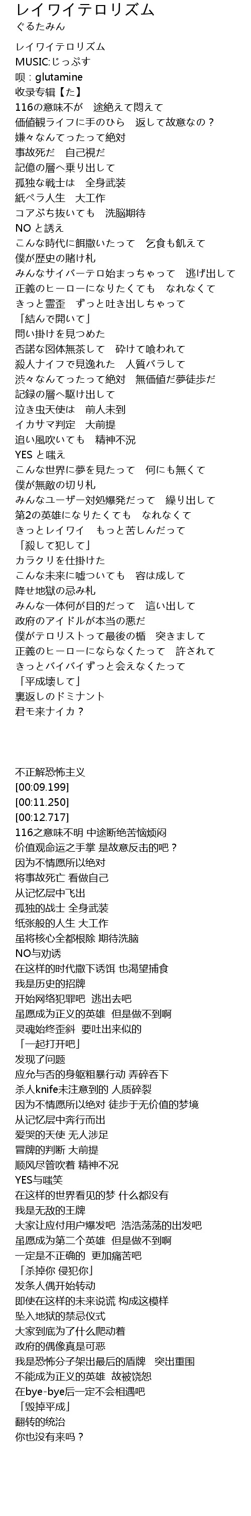 | [00:05.34] | レイワイテロリズム |