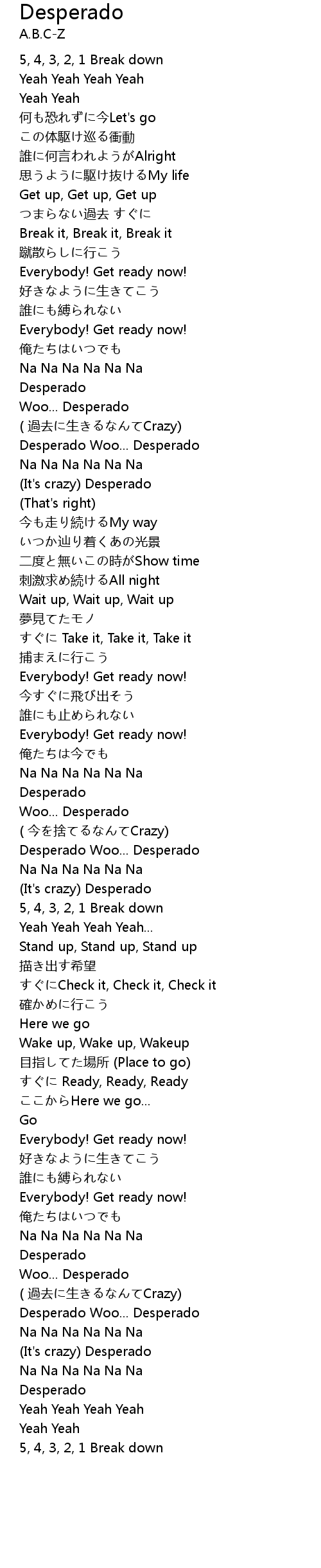 | Song | Desperado |