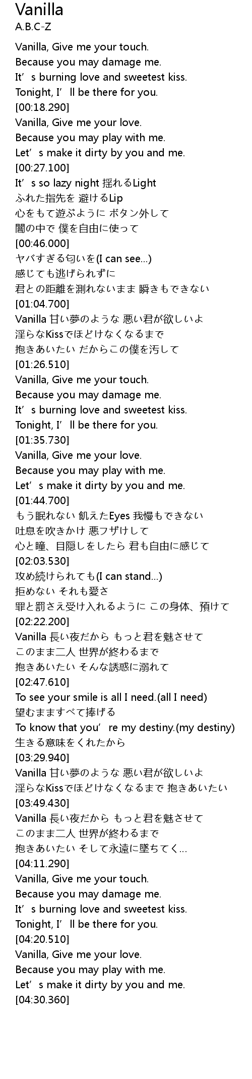 | [03:50.180] | Vanilla 長い夜だから もっと君を魅させて |