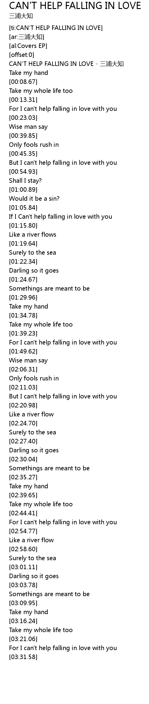 | [00:00.93] | CAN' T HELP FALLING IN LOVE sān pǔ dà zhī |