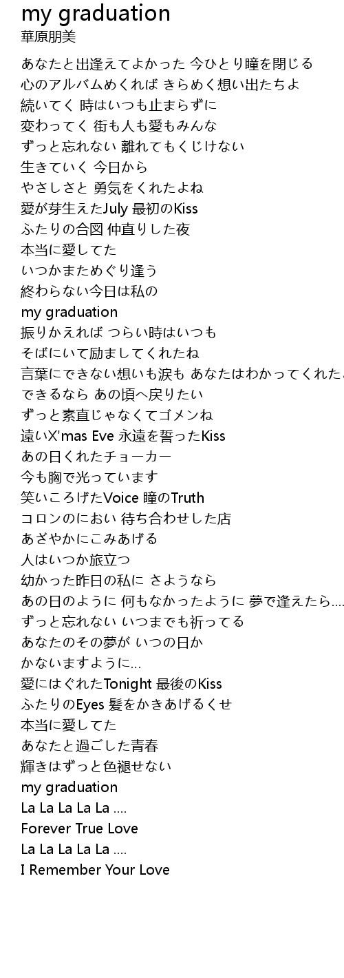 | 言葉にできない想いも涙も あなたはわかってくれたよね | |