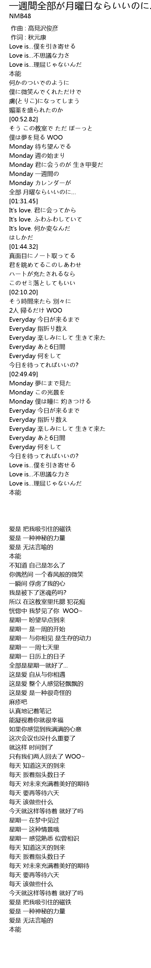 | [01:06.75] | Monday 待ち望んでる |