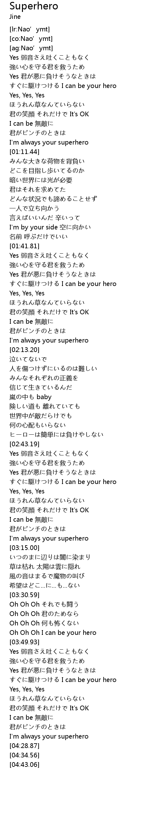 | [03:12.38] | I' m always your superhero |