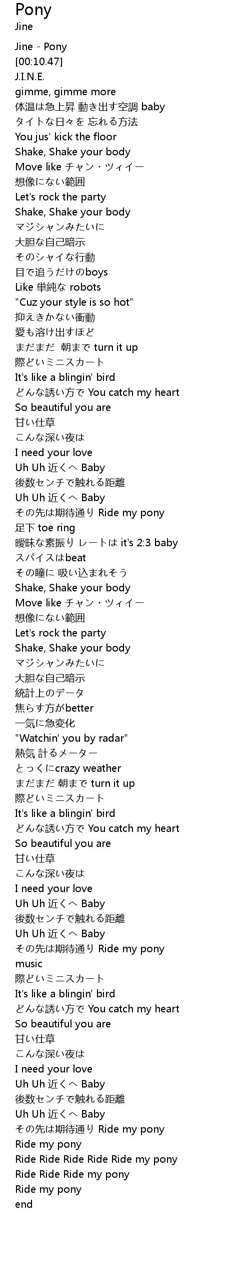 | [03:34.99] | Ride Ride Ride Ride Ride my pony |