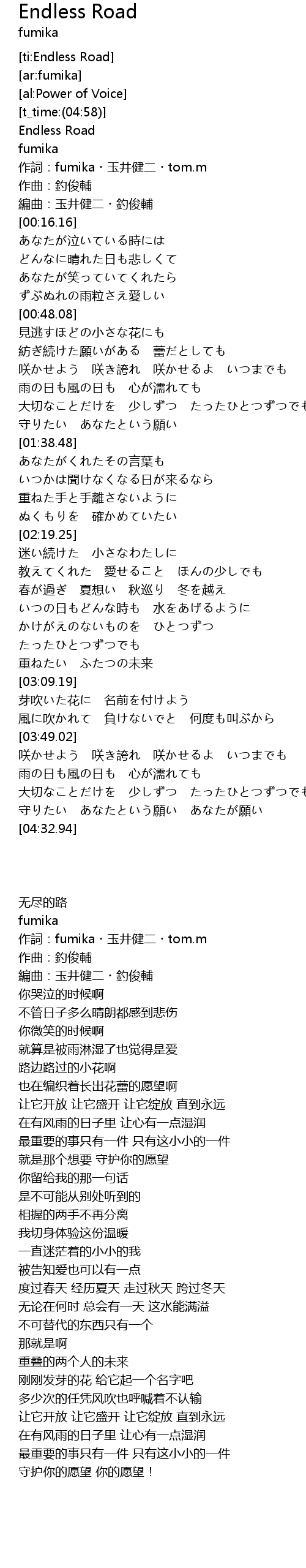 | [00:04.63] | zuò cí: fumika yù jǐng jiàn èr tom. m |