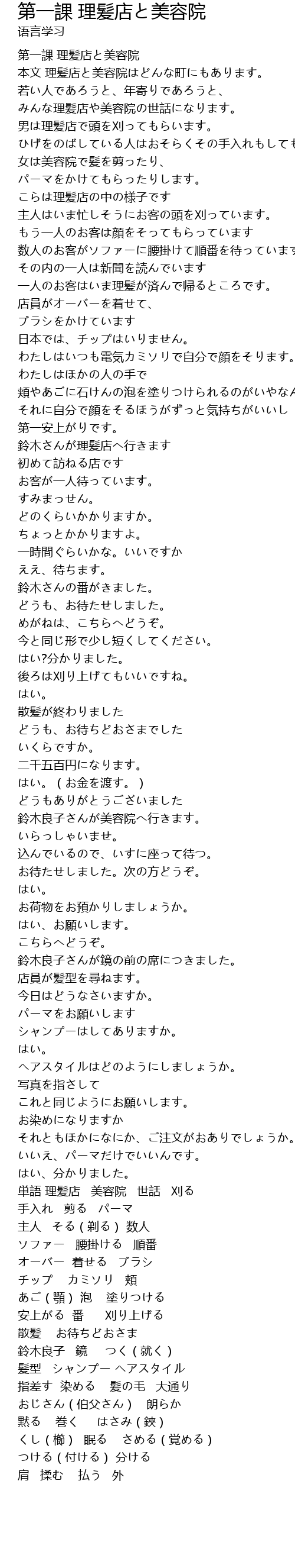 | [00:00.00] | 第一課 理髪店と美容院 |