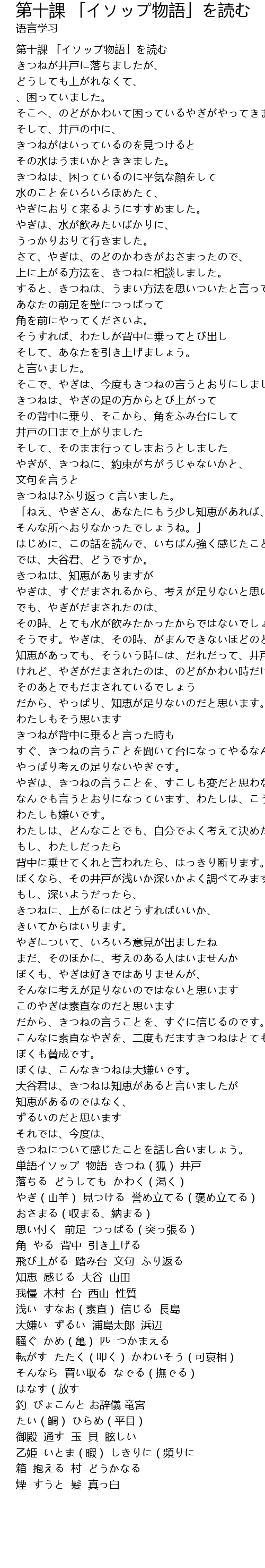 | [00:00.00] | 第十課 「イソップ物語」を読む |