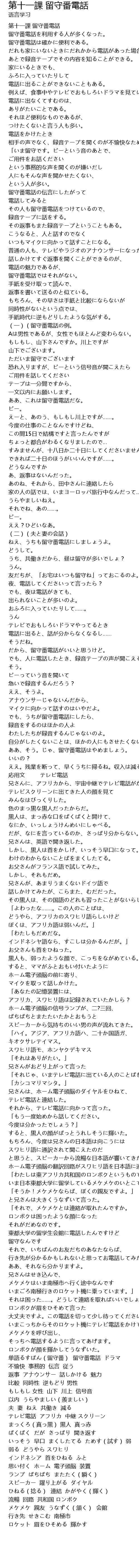 | [00:11.73] | 留守番電話を利用する人が多くなった。 |