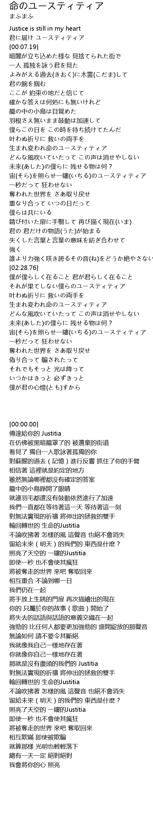 | [00:00.00] | Justice is still in my heart |