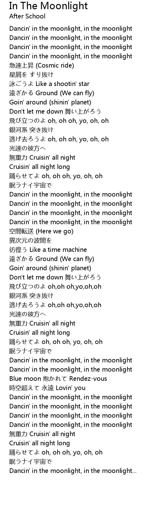 | Dancin' in the moonlight, in the moonlight | |