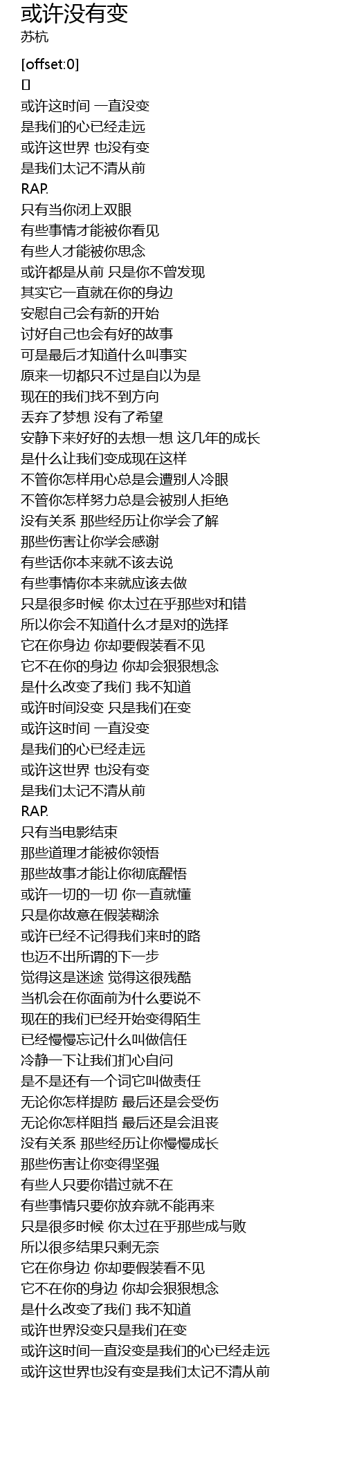 | [03:32.577] | 或许这时间一直没变是我们的心已经走远 或许这世界也没有变是我们太记不清从前 |