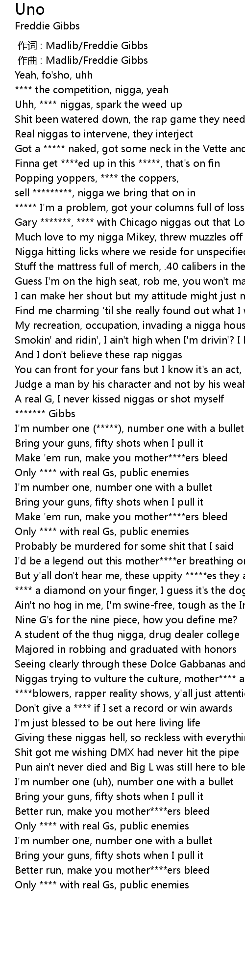 | [01:03.644] | I'm number one (*****), number one with a bullet |
