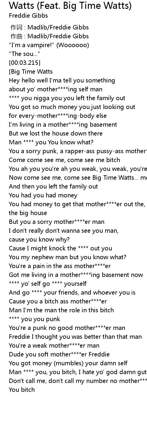 | [01:15.159] | Cause you a bitch ass mother****er |