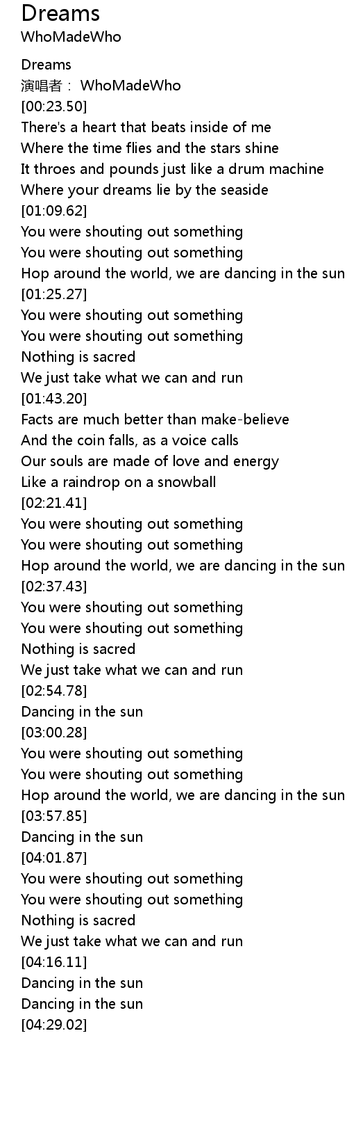 | [04:26.78] | Dancing in the sun |