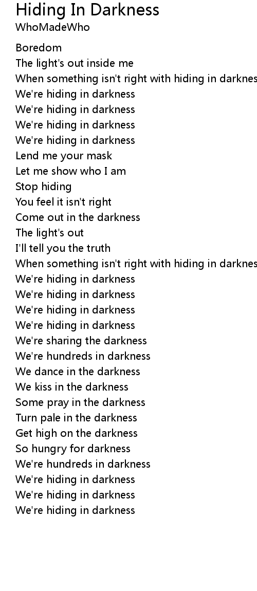We're hiding in darkness |