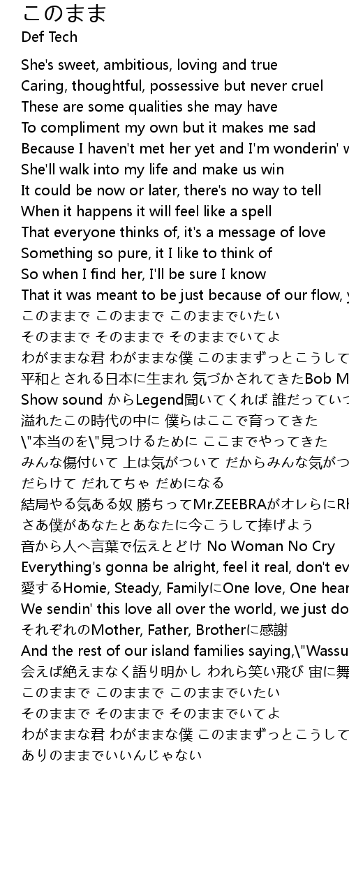 | 音から人へ言葉で伝えとどけ No Woman No Cry | |