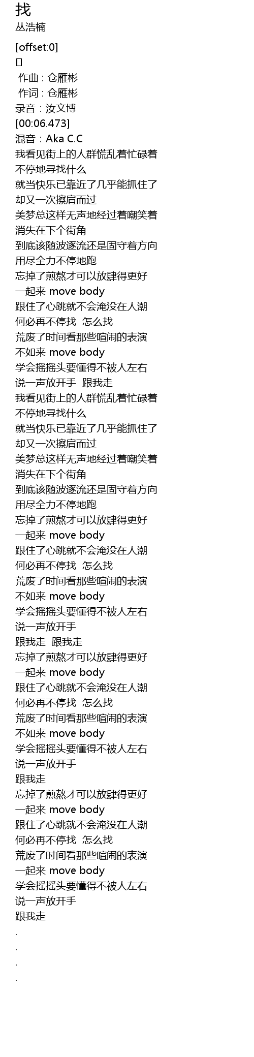 | [02:34.102] | 一起来 move body |