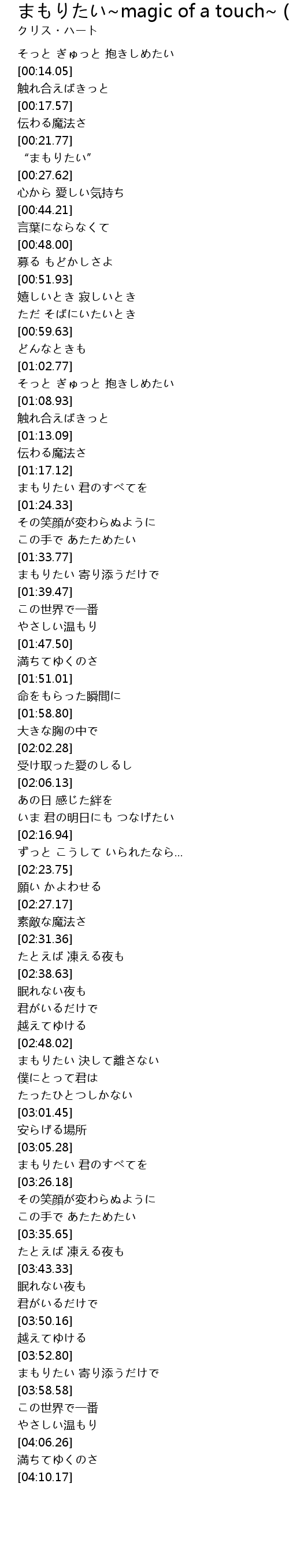 | [03:21.10] | まもりたい 君のすべてを |
