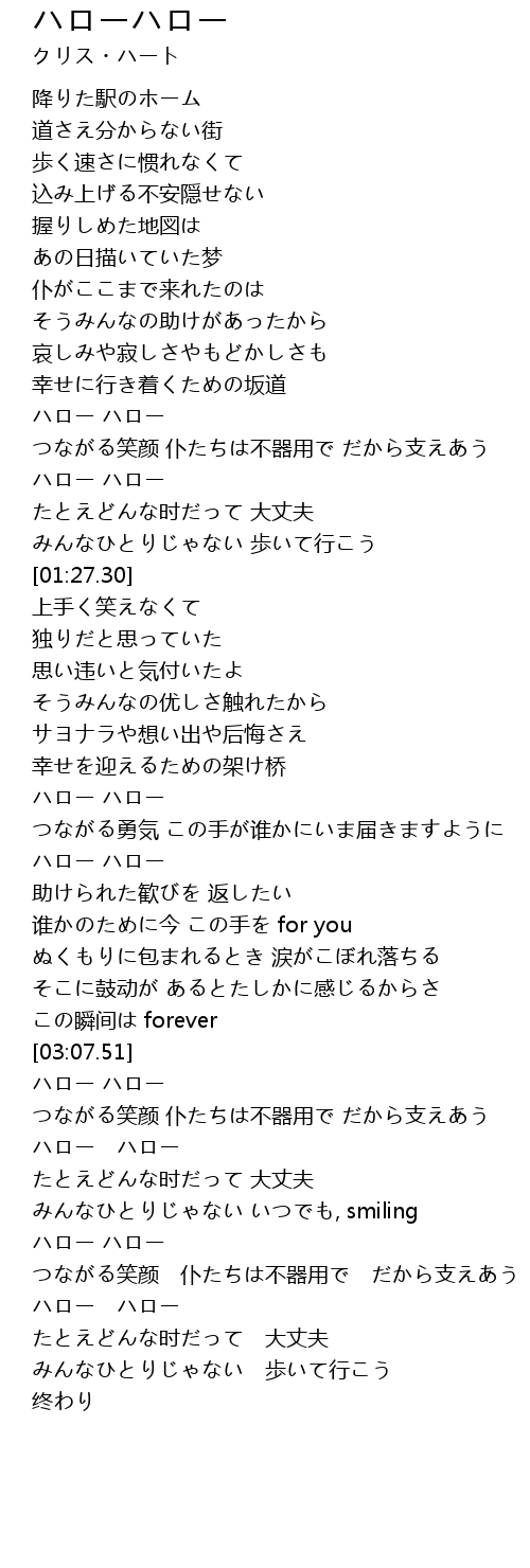 | [03:28.52] | みんなひとりじゃない いつでも, smiling |