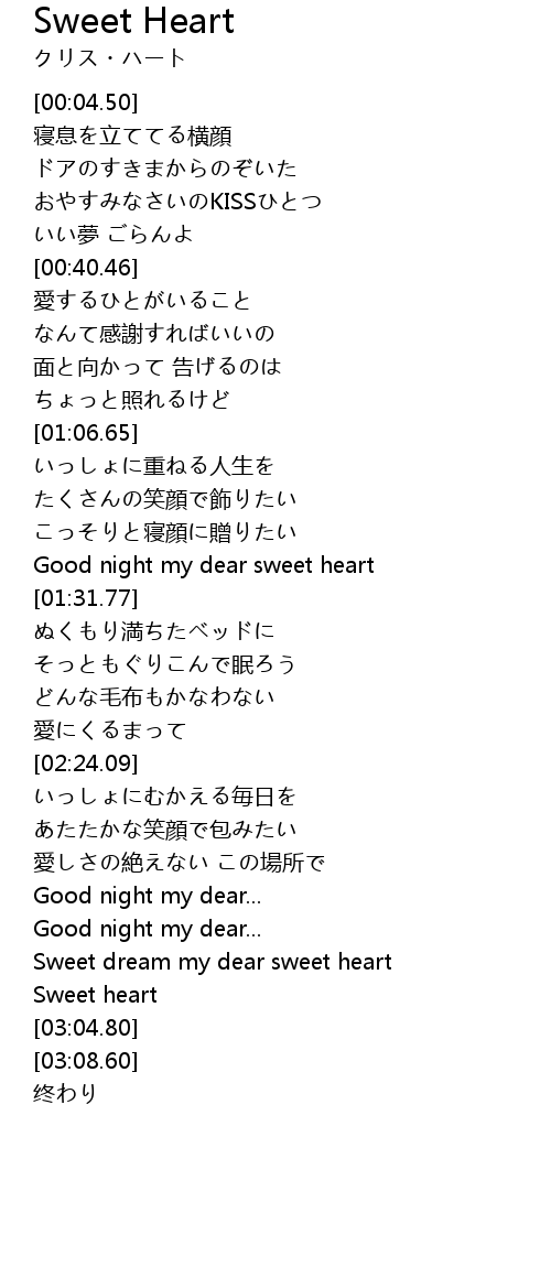 | [03:00.73] | Sweet heart |