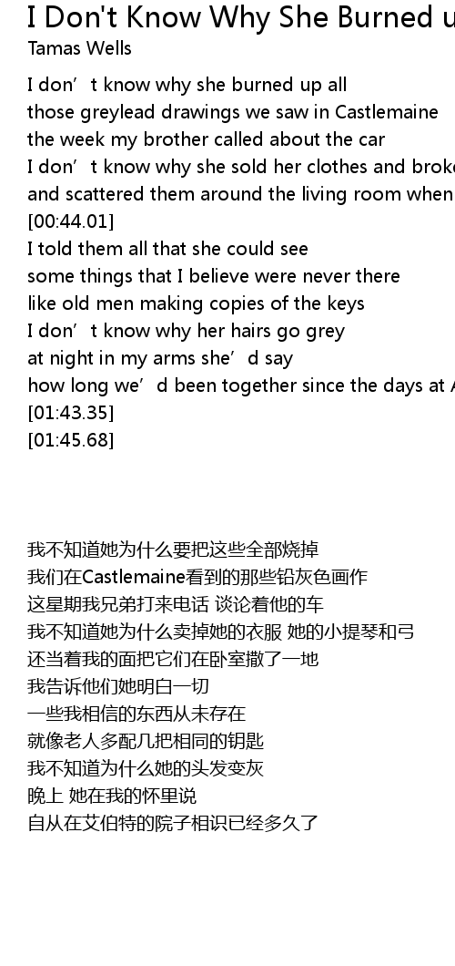| [00:23.93] | I don' t know why she sold her clothes and broke her violin and bows |